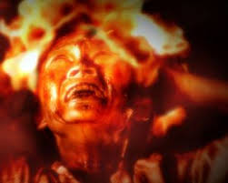 - Wanita yang memakan badannya sendiri serta dibawahnya tampak api yang menyala-nyala dengan hebatnya.